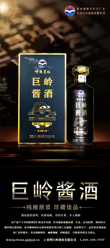 貴州巨嶺酒業(yè)有限公司,座落于聞名世界的古鎮(zhèn),國酒之鄉(xiāng)“茅臺鎮(zhèn)”。與“國酒茅臺”共享得天獨(dú)厚的氣候、土壤、水源、以及微生物群等自然資源;《巨嶺酒業(yè)》老作坊前身“巨嶺燒坊”,經(jīng)過多年的傳承,秉承先輩們代代相傳的古法釀造工藝,歷經(jīng)幾代人的延續(xù)和釀酒發(fā)展,奠定了《巨嶺酒業(yè)》發(fā)展的堅(jiān)實(shí)基礎(chǔ)。 作為貴州茅臺鎮(zhèn)本土規(guī)模企業(yè),《巨嶺酒業(yè)》擁有傳統(tǒng)發(fā)酵窖池200余口,年產(chǎn)優(yōu)質(zhì)醬香白酒近2600多噸,儲酒能力12000多噸;并配有3條現(xiàn)代化包裝生產(chǎn)線;公司現(xiàn)有職工300多名,有釀酒師15人,技術(shù)人員22人,本科以上學(xué)歷管理人員12人,大專學(xué)歷工作人員78人,是茅臺古鎮(zhèn)醬酒傳承的白酒知名企業(yè)。 《巨嶺酒業(yè)》勵精圖治與精益求精的發(fā)展理念,已成長為行業(yè)認(rèn)可、社會公認(rèn)的“規(guī)模釀酒企業(yè)”,酒業(yè)協(xié)會副會長單位”和“愛心企業(yè)”。 公司現(xiàn)在擁有:《巨嶺醬酒》,《嶺臺》,《玉嶺燒坊》,《酒緣》《情滿壺》等上百個品牌產(chǎn)品,公司注重品牌發(fā)展,以《巨嶺醬酒》為品牌核心,以個性化定制和尊貴封藏為營銷模式,制定出“一核兩柱”的銷售模式。《巨嶺醬酒》作為品牌主體,做擴(kuò)展市場的排頭先鋒,全國布局,點(diǎn)線結(jié)合,網(wǎng)狀布局,包括《巨嶺》系列產(chǎn)品.... |